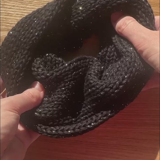 Create an effortlessly chic look with an oversize black sparkly chouchou scrunchie.