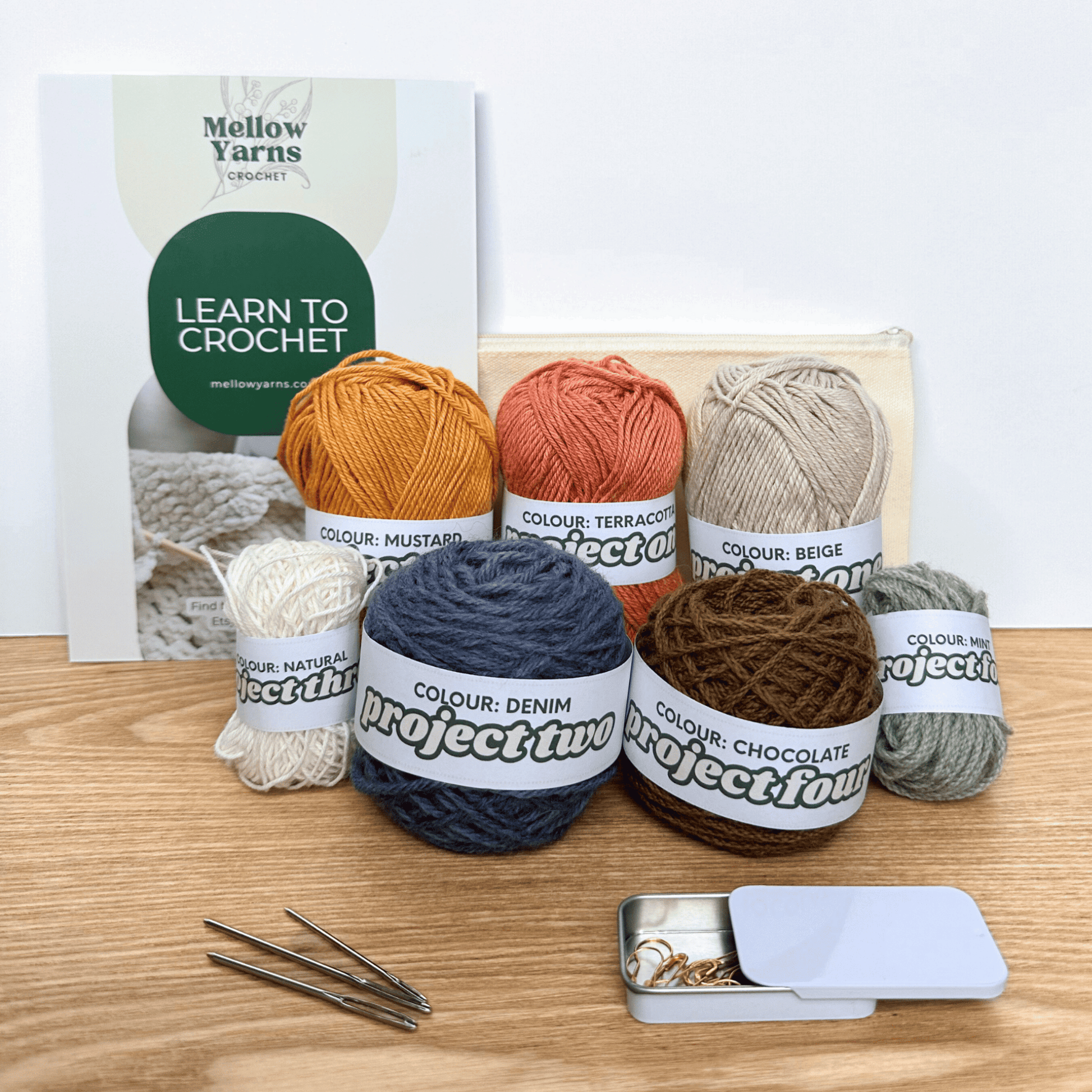 By the end of the kit: You’ll have completed four beautiful, functional projects and will feel confident reading and following crochet patterns. You’ll have learned all the essential stitches, techniques, and skills needed to crochet your way into more complex projects—whether that’s blankets, garments, toys, bags or other fun creations!